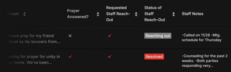 This helps the prayer wall stay focused on current needs without requiring regular manual cleanup and gives leaders a longer-term history of the church’s prayer activity.