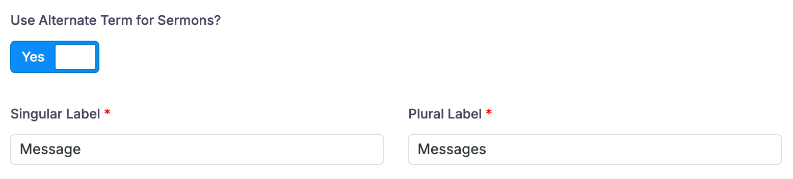 Churches use different language for the weekly message. Some say “sermons,” others prefer “messages,” “teachings,” “talks,” or even “homilies.” The Sermons module adapts to your church’s preferred terminology with a single setting, instantly renaming “Sermons” throughout the entire site.