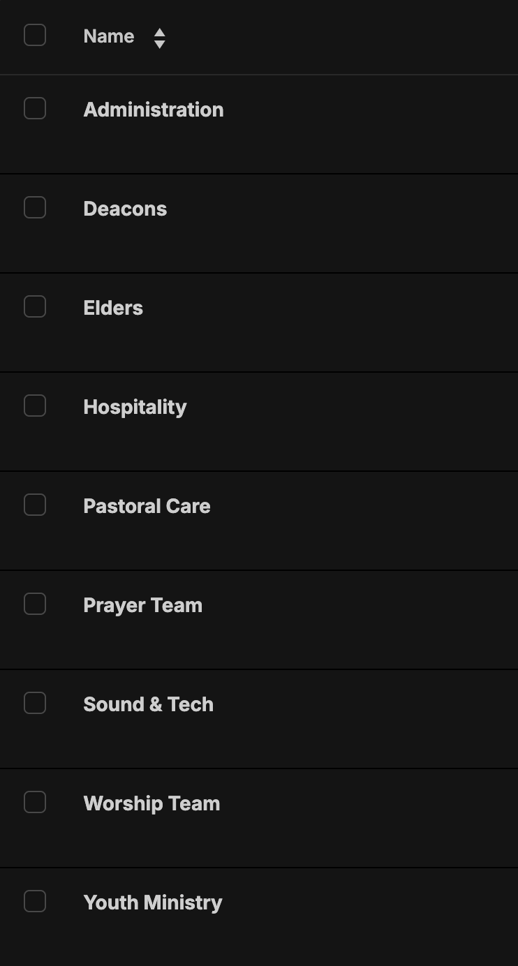 Whether your church is large or small, clear groupings help people understand how ministry is carried out and who to look for within each area of service.