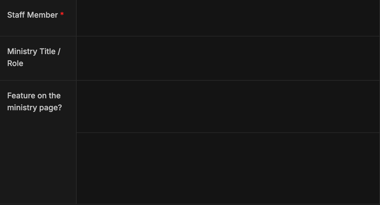 When you assign someone to a ministry—whether that’s Kids, Worship, Outreach, or Administration—their profile automatically appears on the ministry page. There’s no additional editing or manual placement required. Their presence is updated wherever it matters.